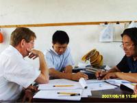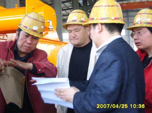 | 公司領(lǐng)導(dǎo)與客戶商討技術(shù)問題 | 公司領(lǐng)導(dǎo)與國(guó)外客人進(jìn)行技術(shù)交流 | 車間一隅 |