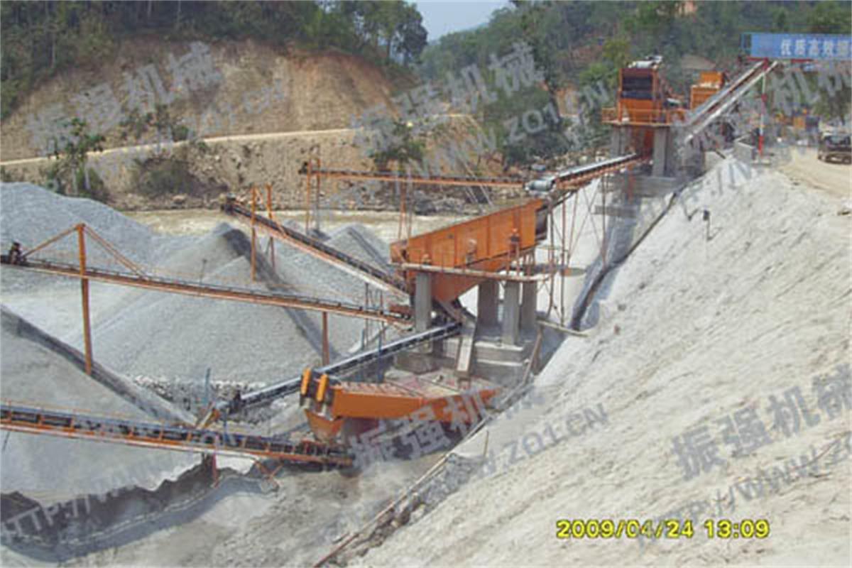 緬甸砂石料系統(tǒng)(上為破碎機(jī),中為振動篩,下為洗砂機(jī))