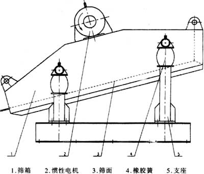 - 由于激振器布置在篩箱重心的上方,故篩箱兩端橢圓長軸成下八字形,且給料端橢圓長軸的上端朝向排料方向,有利于給到箱機上的物料迅速散開,而排料端橢圓長軸上端逆著排料方向,減低物料運動速度,有利于難篩物料透篩,且圓弧狀的篩面又增大了篩機的有效面積,從而可以提高其處理能力。