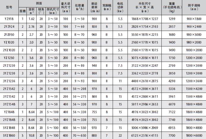 1. 篩機分單層和雙層,并有輕型和重型之分。